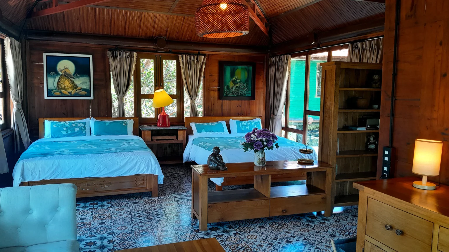 Indulge in the spacious serenity of the larger Double Bungalow. With room for three and an additional bed, this accommodation offers a perfect blend of comfort and space.